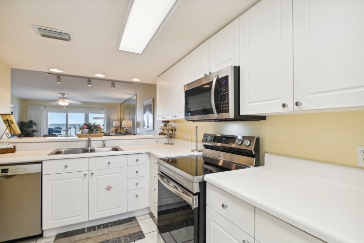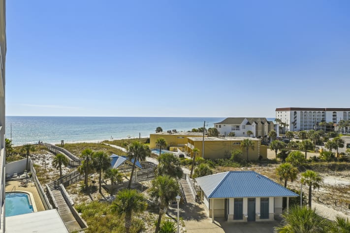 These units have angled views of the Gulf of Mexico which increase on the higher floors. The property has many amenities, to include a large outdoor pool, indoor swimming pool, family BBQ with picnic area, and fitness room.