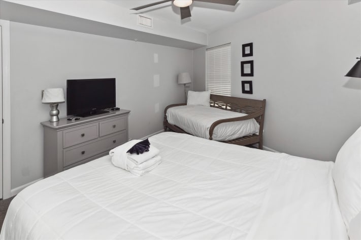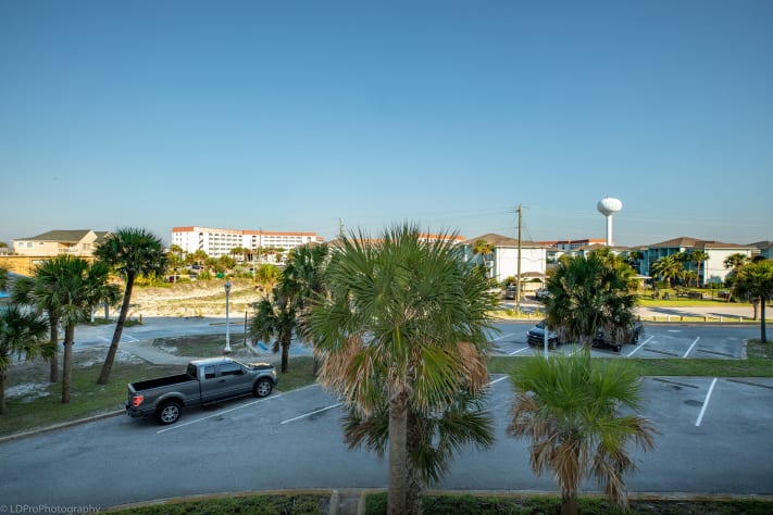 These units have angled views of the Gulf of Mexico which increase on the higher floors. The property has many amenities, to include a large outdoor pool, indoor swimming pool, family BBQ with picnic area, and fitness room.