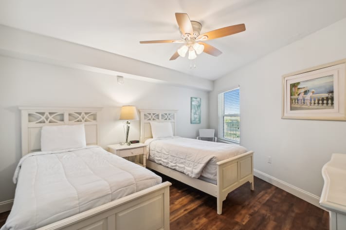 These units have angled views of the Gulf of Mexico which increase on the higher floors. The property has many amenities, to include a large outdoor pool, indoor swimming pool, family BBQ with picnic area, and fitness room.