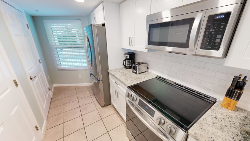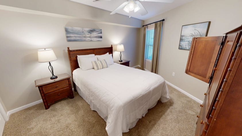 This condo has a living room that offers comfortable seating and one of the couches folds out to a Queen Sofa sleeper. There is dining area that can accommodate 6 with additional seating at the kitchen bar. The large kitchen is the perfect place to cook a dinner. All the cookware and dishwasher you could need is already in the condo so all you need is your catch of the day.